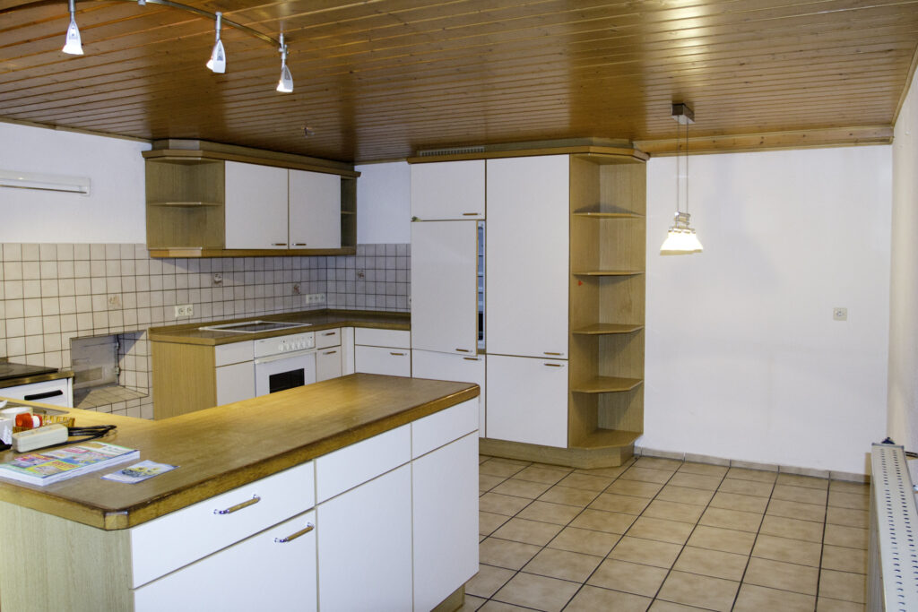 Im Erdgeschoss befindet sich die Küche mit einer großzügigen Einbauküche, auch zum Essen ist hier ausreichend Platz.