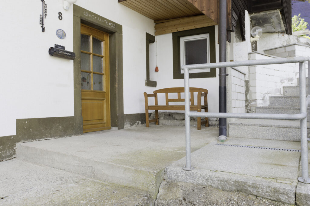 Am Ortsrand liegt ein zum Haus gehöriger etwa 50 m² großer Garten, der zu Fuß in zwei Minuten erreichbar ist.