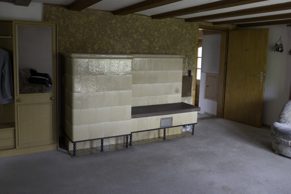 Das Haus verfügt über eine Öl-Zentralheizung, einen großen Kachelofen im Wohnzimmer sowie einen kleinen Beistellherd in der Küche.